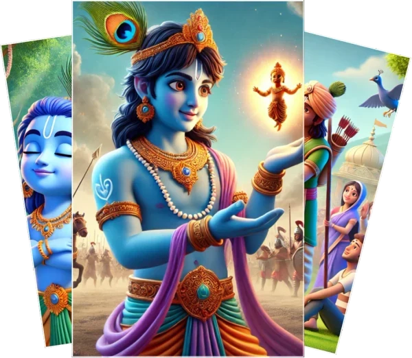 The Bhagavad Gita for Kids is a beautifully illustrated digital book that brings the timeless wisdom of the Bhagavad Gita to young minds in an engaging and accessible way. This specially crafted edition is designed for children aged 6-12 years.
